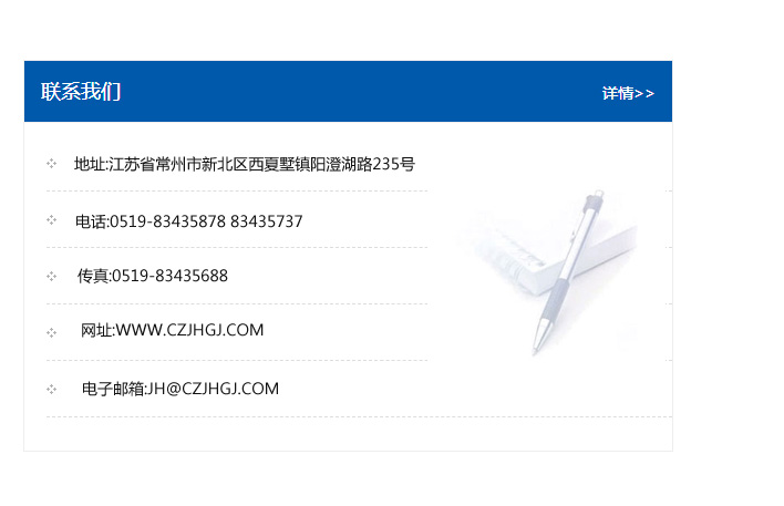 傳真:0519-83435688    郵編:213135    網址:WWW.czjhgj_com.jikerenwu.com    電子郵箱:JH@czjhgj_com.jikerenwu.com